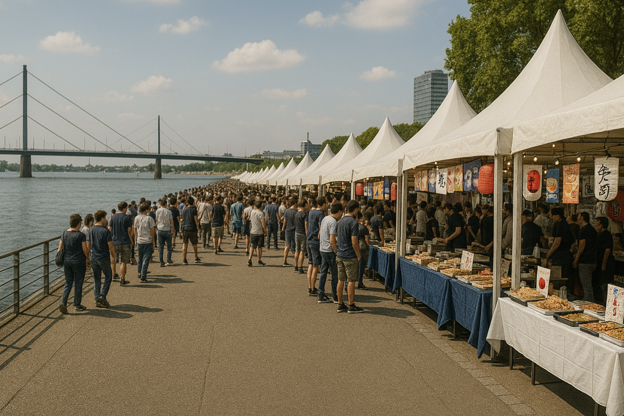 Drei Tage lang gibt es hier alles, was Fans der japanischen und koreanischen Küche lieben: Sushi, Ramen, Takoyaki, Gimbap, Korean Fried Chicken, Bubble Tea und vieles mehr. Dazu Livemusik, Shows und die entspannte Atmosphäre direkt am Rhein.